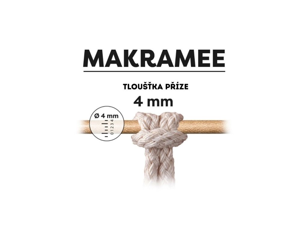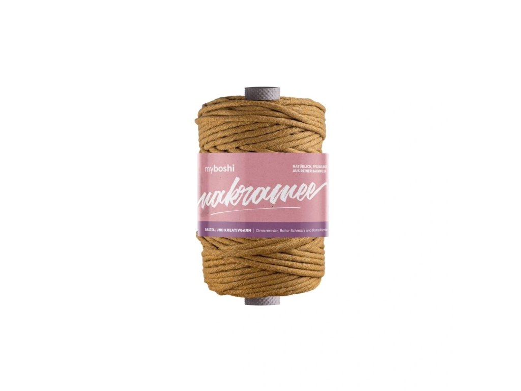Kroucená příze myboshi Makramee je přírodní produkt prémiové kvality vyrobený ze 100% bavlny. Vyrábí se v Německu a v tloušťce 4mm je na klubku namotaných 50 m šňůry.