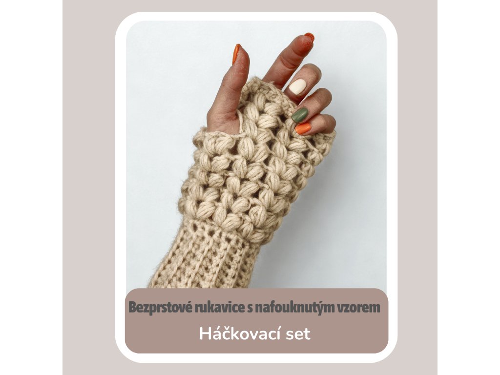 V tomto setu najdeš vše, co potřebuješ k uháčkování páru bezprstových rukavic