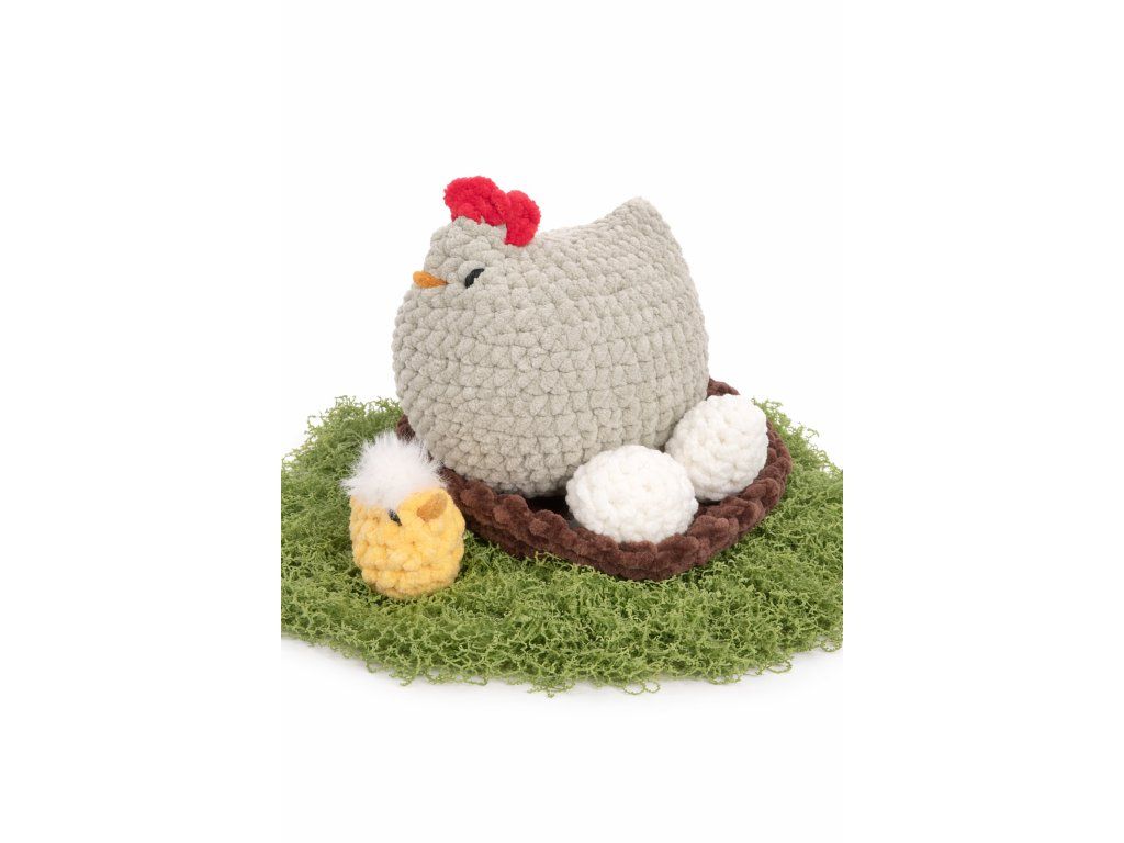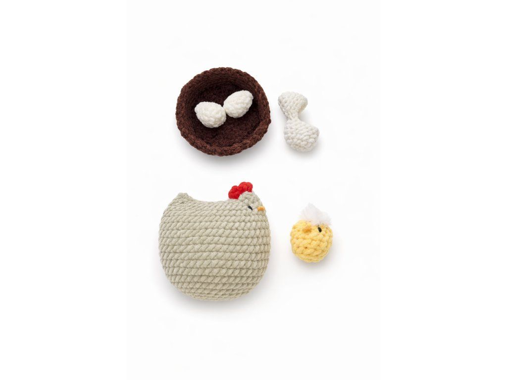 Všechny výrobky jsou z jednoduchého vzoru, který zvládnou i začátečníci. Díky tloušťce příze rychle vznikají pod rukama a díky spotřebě z tohoto setu uháčkuješ 2-3 slepice koko, několik hnízd, hejno kuřat i pěknou snůšku vajíček :)